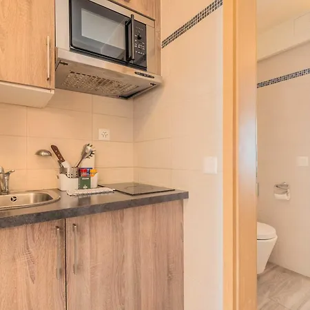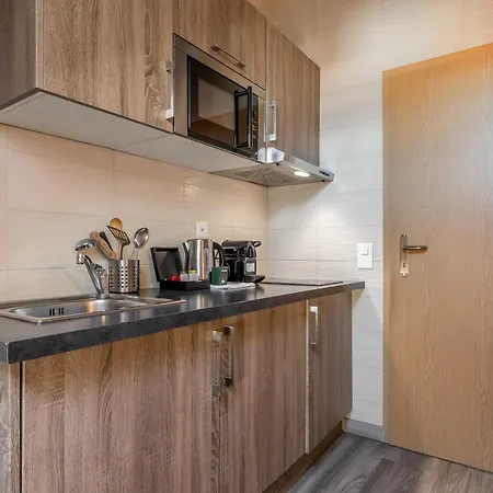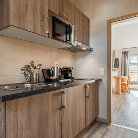 Este apartamento ofrece una cocina con una nevera y una placa de cocina. El Suites Cityzen Geneve está justo al lado de la parada de autobuses Alpes.